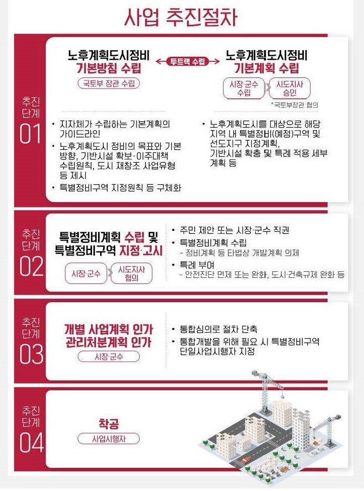 사업추진절차를 다시한번 요약해 보니 참고하기 바라며, 국토교통부 보도자료를 첨부와 같이 공유한다.