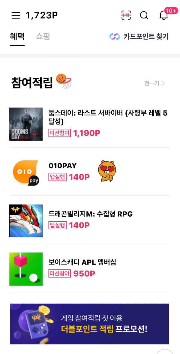 사실 실행해 본 것 중에 포인트를 얻을 확률이 높지 않기 때문에 추천하지 않는다.
