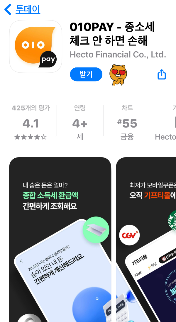 그러면 앱을 까는 화면으로 바뀌고 '받기'를 통해 앱을 깔면 된다.