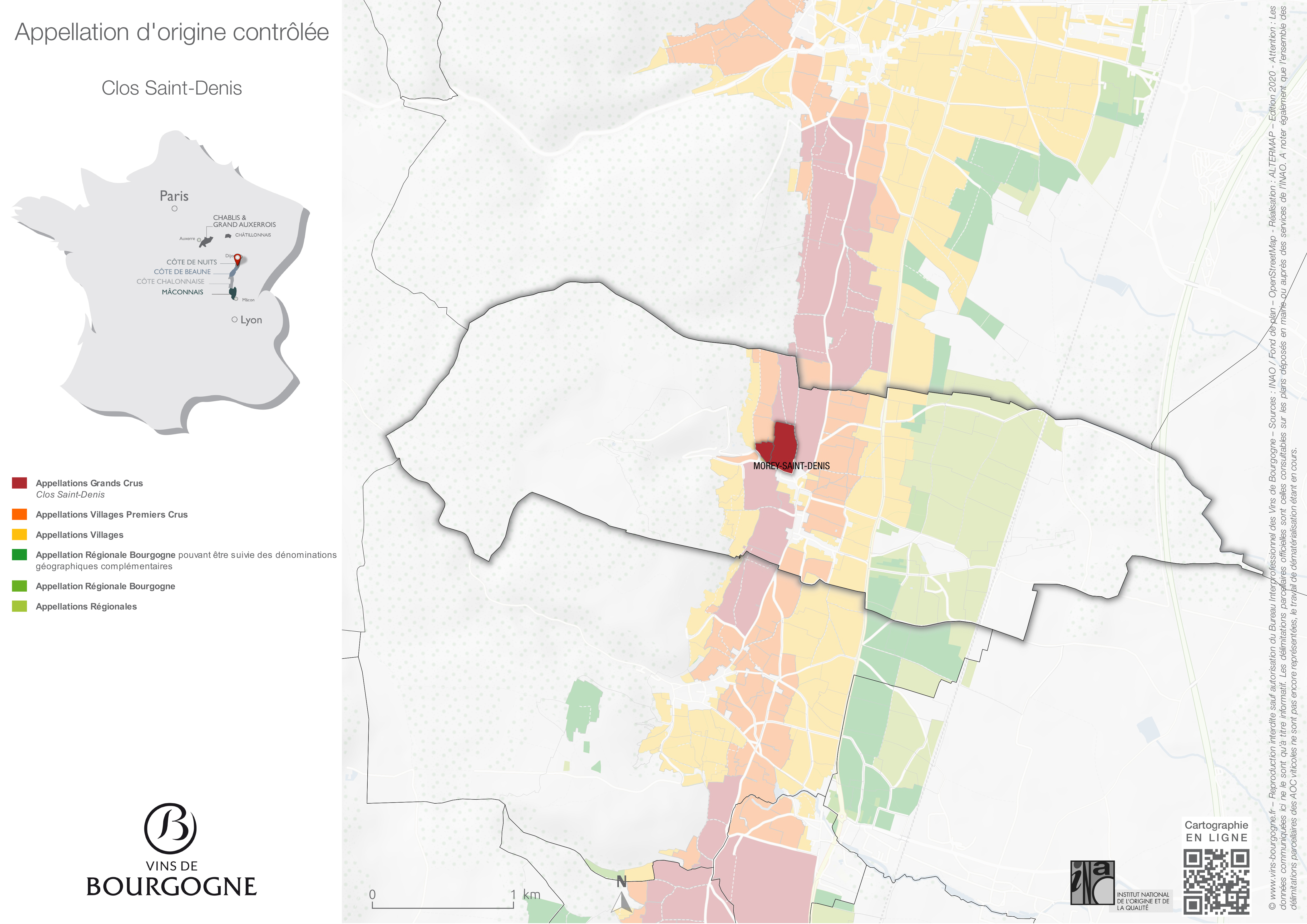 Premiers Crus가 풍부한 모레 생 드니는 5개의 Grands Crus(Clos de Tart, Bonnes Mares, Clos de la Roche, Clos Saint-Denis, Clos des Lambrays)를 자랑한다.