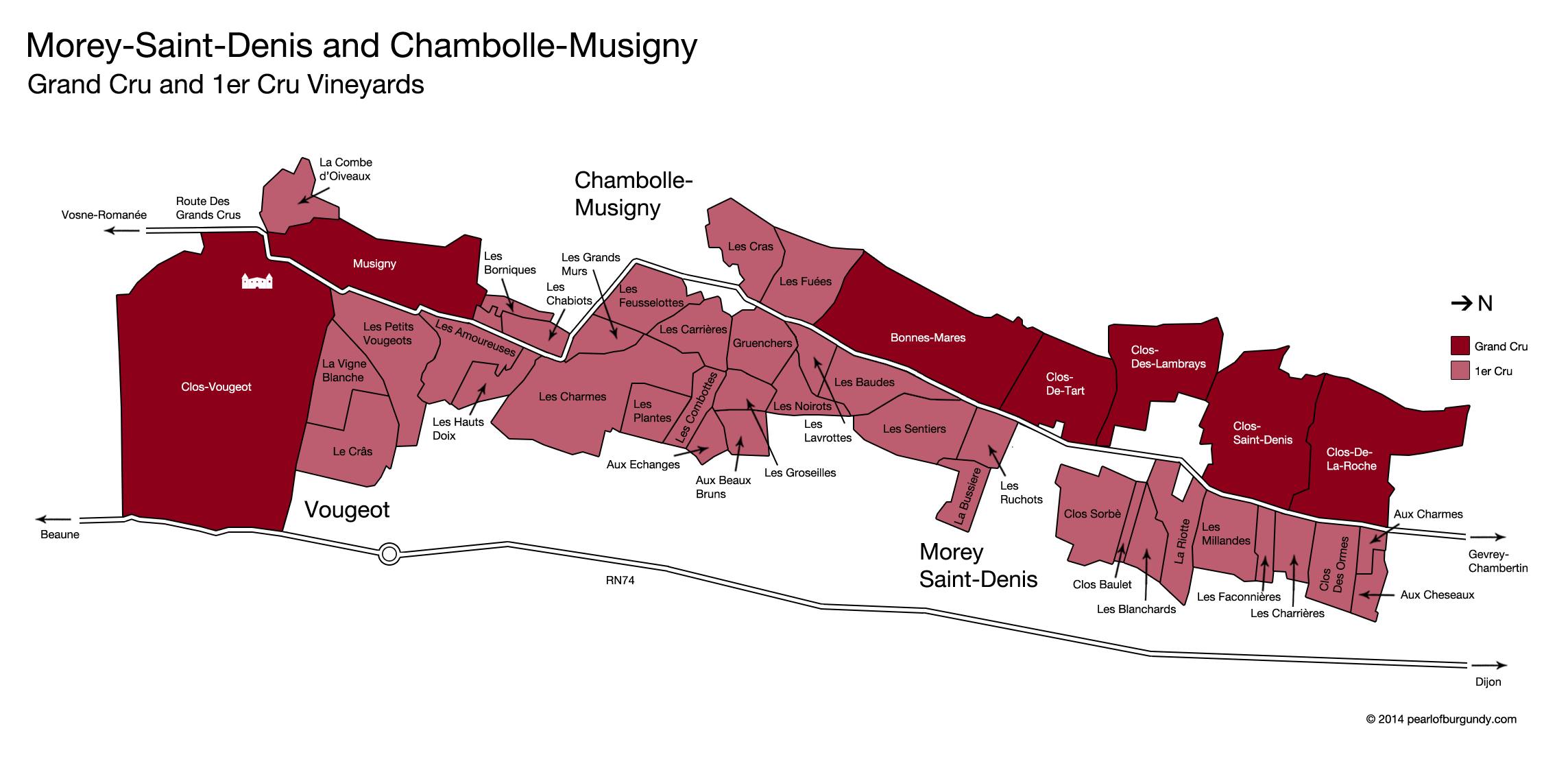 아펠라시옹은 Gevrey-Chambertin 와인과 Chambolle-Musigny 와인 사이에 다리 역할을 한다.