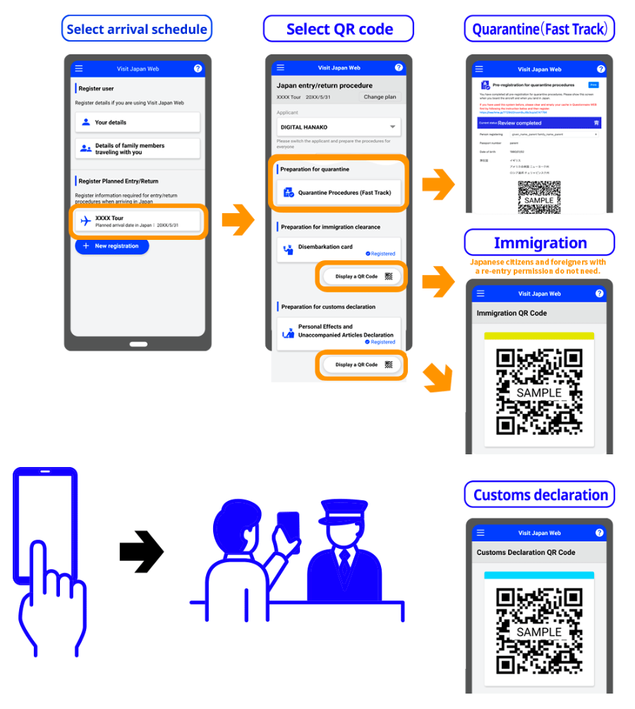 일본 여행을 준비하는 외국인들이 입국 심사, 세관 신고, 검역 절차를 빠르게 마칠 수 있도록 도와주는 시스템입니다.