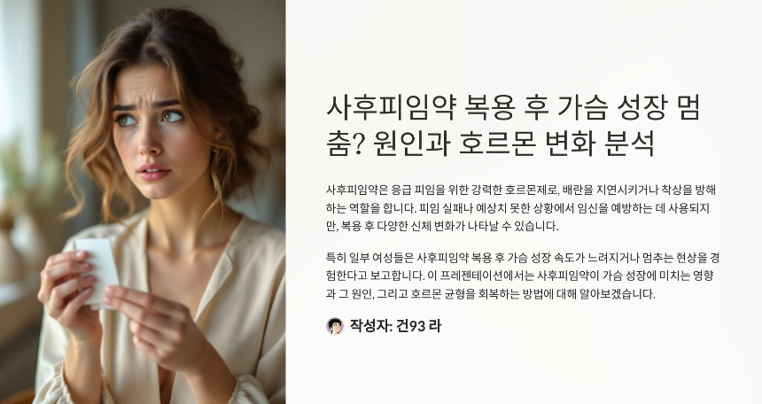 사후피임약으로 인해 가슴 성장 속도가 일시적으로 둔화될 수 있지만, 이는 대부분 일시적인 현상입니다.