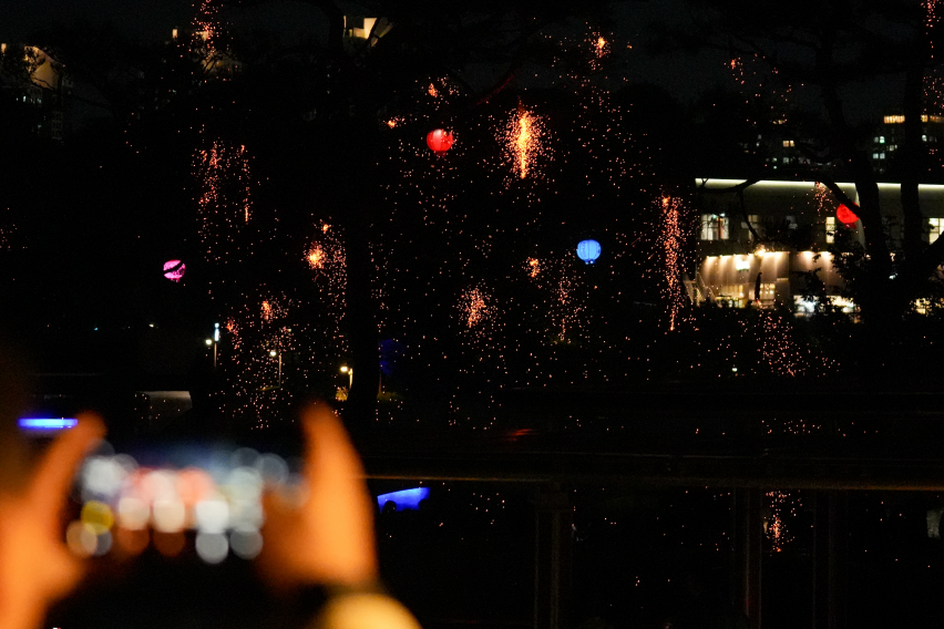 낙화봉에서 불꽃이 떨어지는 불꽃 낙화 퍼포먼스가 하이라이트입니다.