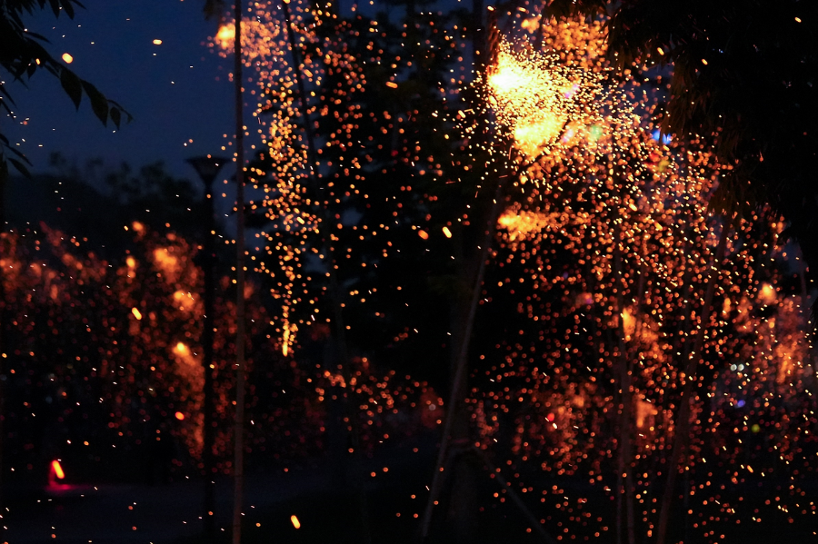 가장 큰 볼거리는 불꽃이 떨어지는 전통 낙화 행사입니다.