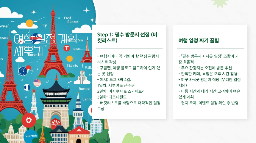 - "필수 방문지 + 자유 일정" 조합이 가장 효율적!