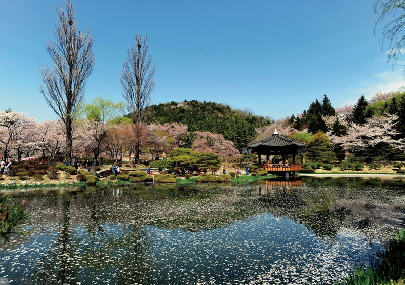 전주의 대표적인 벚꽃 명소인 덕진공원은 호수 위에 떠 있는 듯한 벚꽃 풍경이 인상적입니다.