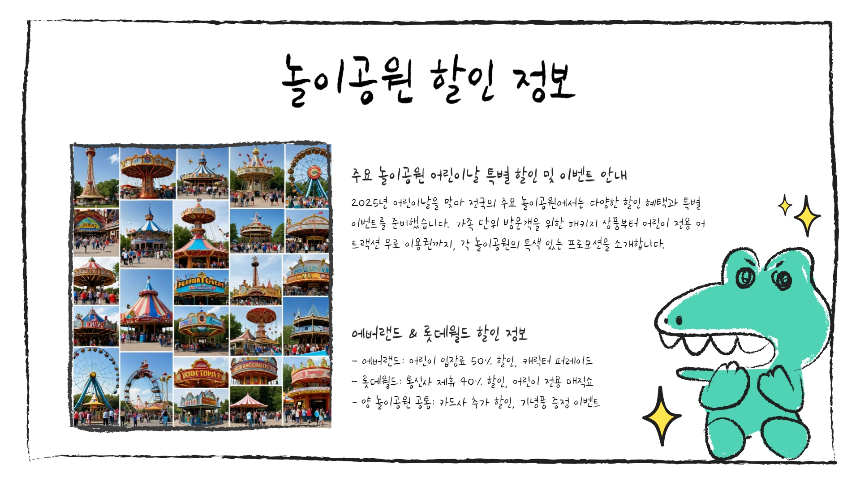 이 포스팅을 참고해 놓치기 쉬운 혜택까지 챙기고, 아이들에게 잊지 못할 하루를 선물해보세요!
